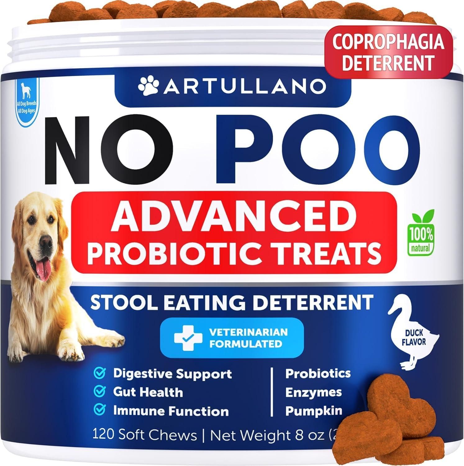 1.help break that nasty habit: coprophagia stool eating deterrent for dogs contains digestive enzymes and dog probiotics that support a healthy gut and help your pet stop snacking on poo.