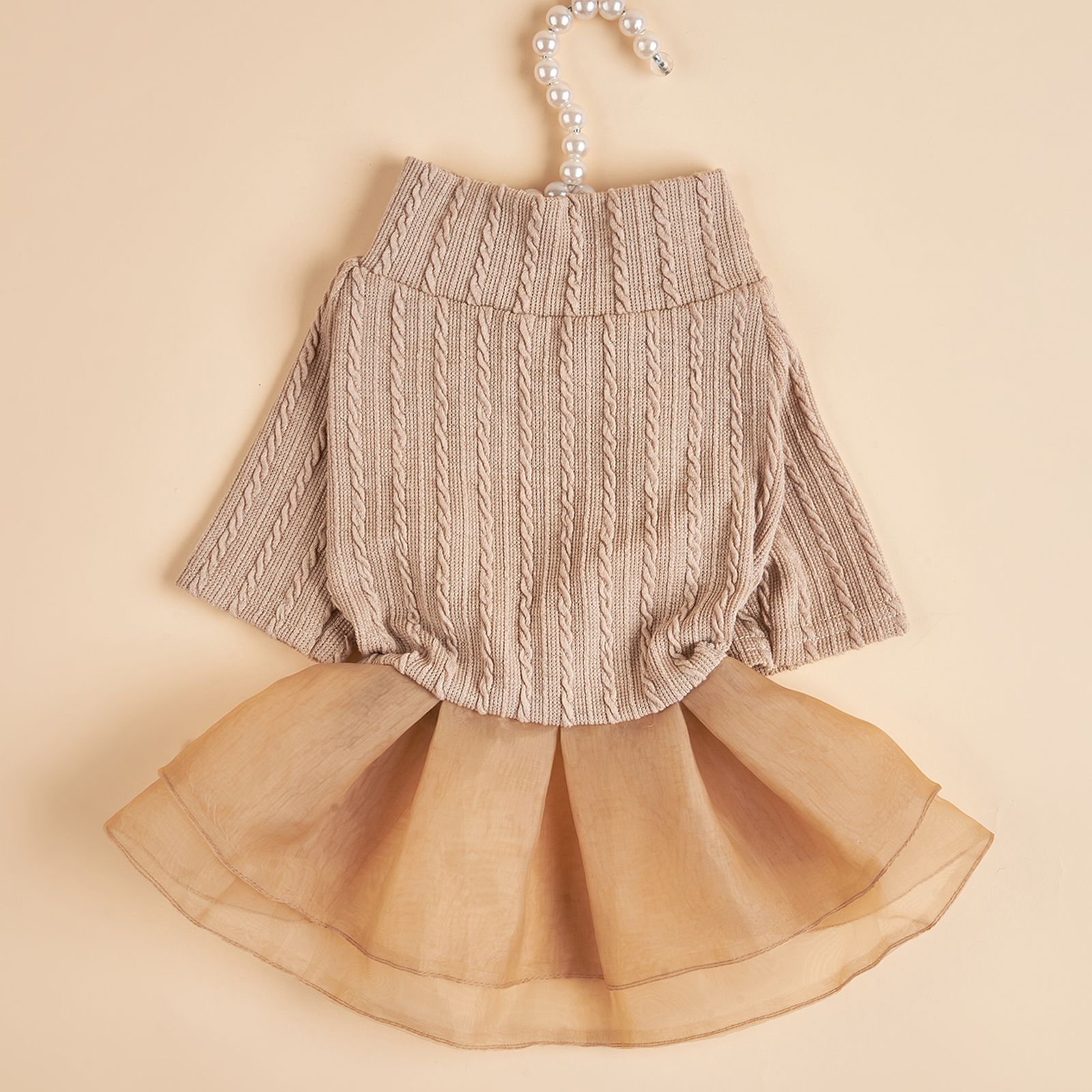 Pet Dog Knitted Fabric Mesh Short Skirt Dress; Cute Cat Apparel; For Small & Medium Dogs